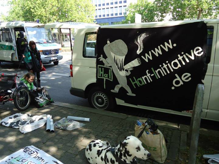 Dank der kooperativen Zusammenarbeit mit dem Cannabis Colonia e.v. schafften wir es dann tatsächlich noch kurzfristig einen Wagen auf die Beine zu stellen, der als rollender Patientenbus mit Soundsystem fungierte.