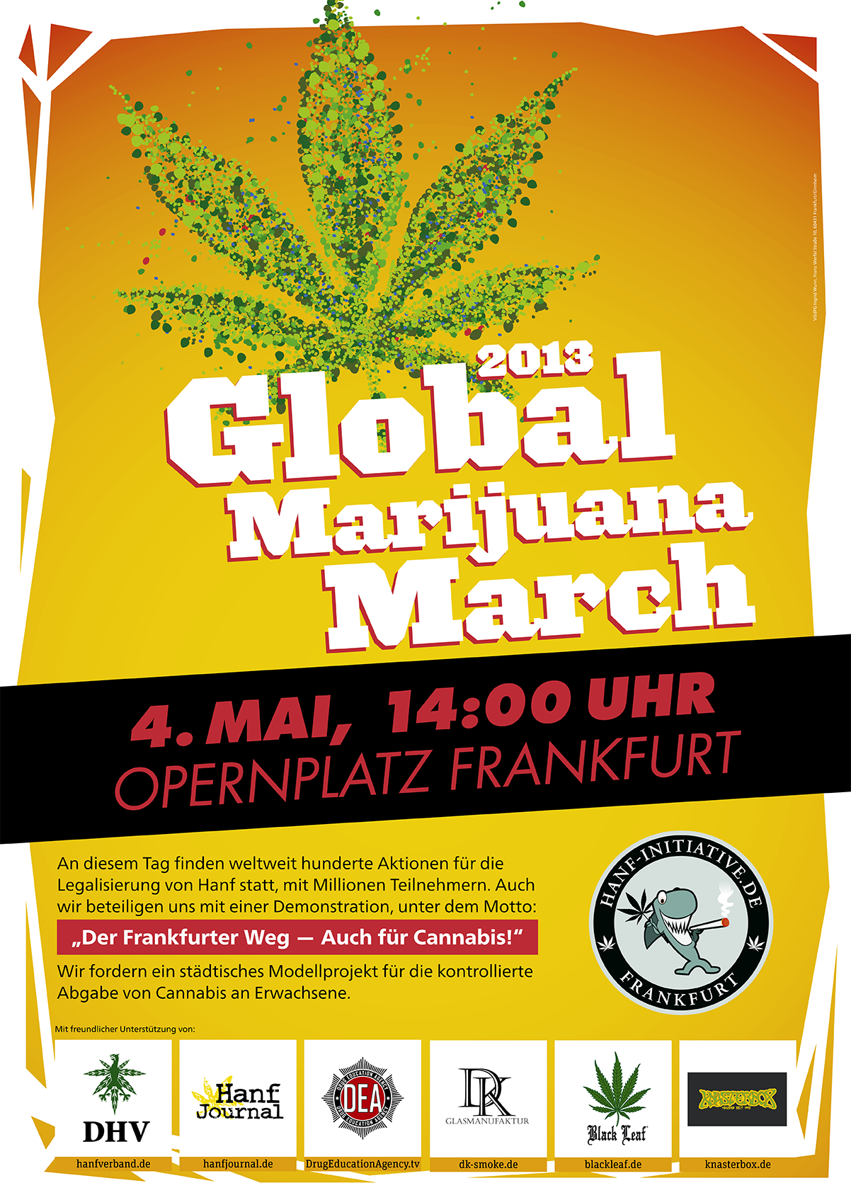 Nachdem die letzten Arbeiten zum vergangenen GMM erledigt sind, können wir uns nun ganz der Zukunft widmen. Dazu möchten wir noch einmal allen interessierten Mithelfern die Möglichkeit geben, uns kennenzulernen und hier in Frankfurt aktiv zu werden. Wir wissen das es hier mehr Menschen geben muss, die Zeit und Lust haben aktiv und langfristig gegen das unsinnige Hanfverbot vorzugehen.